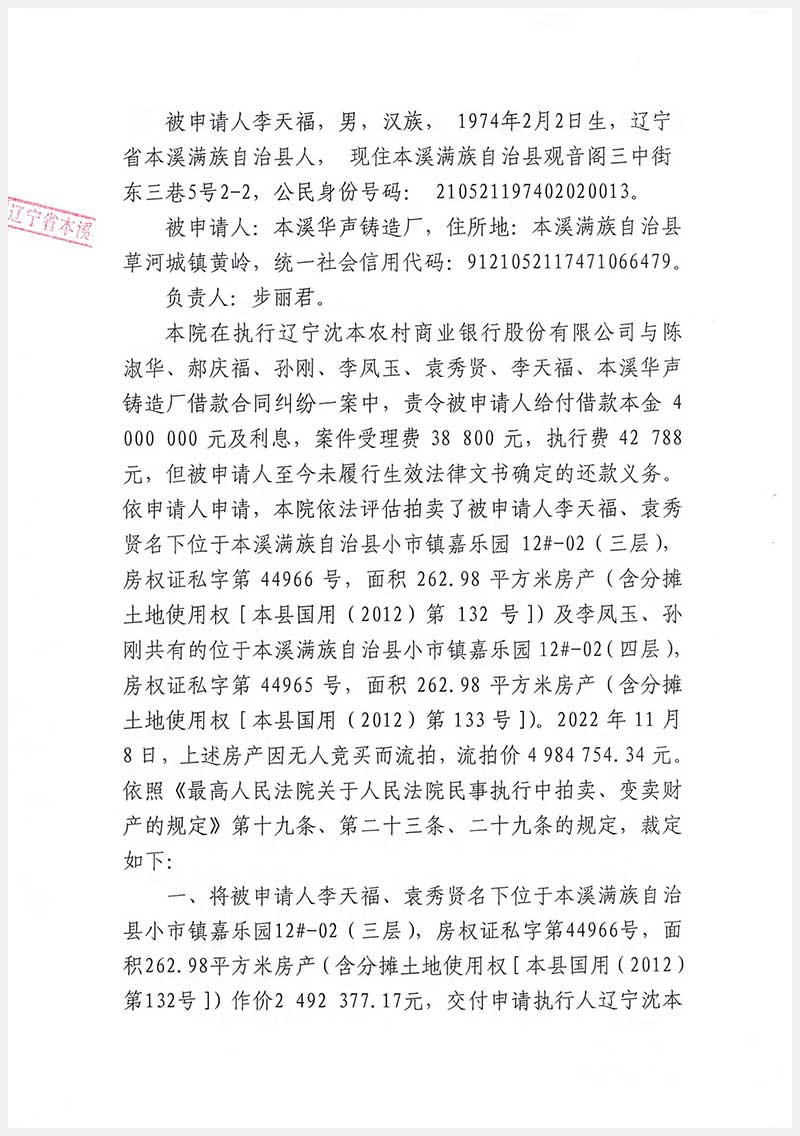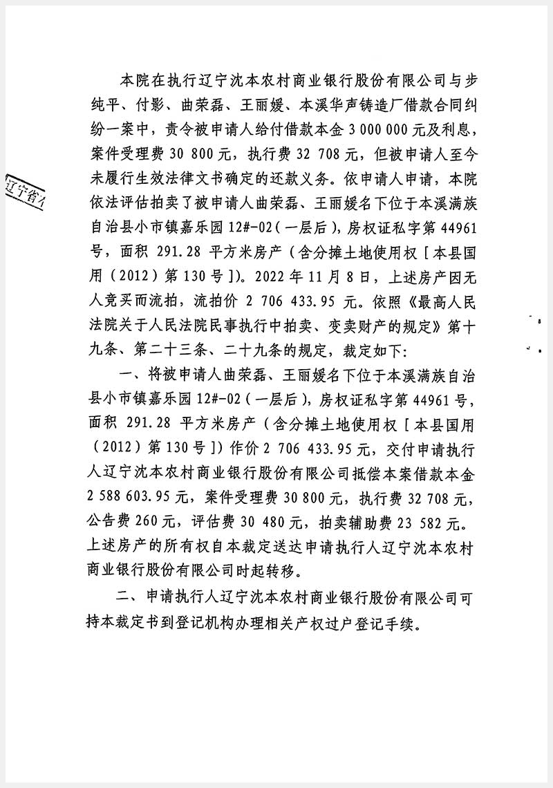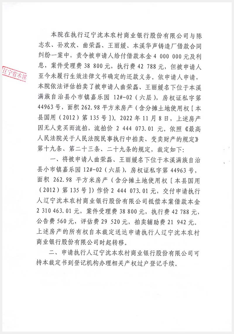 辽宁嘉和拍卖有限公司   咨询热线:024-22529012