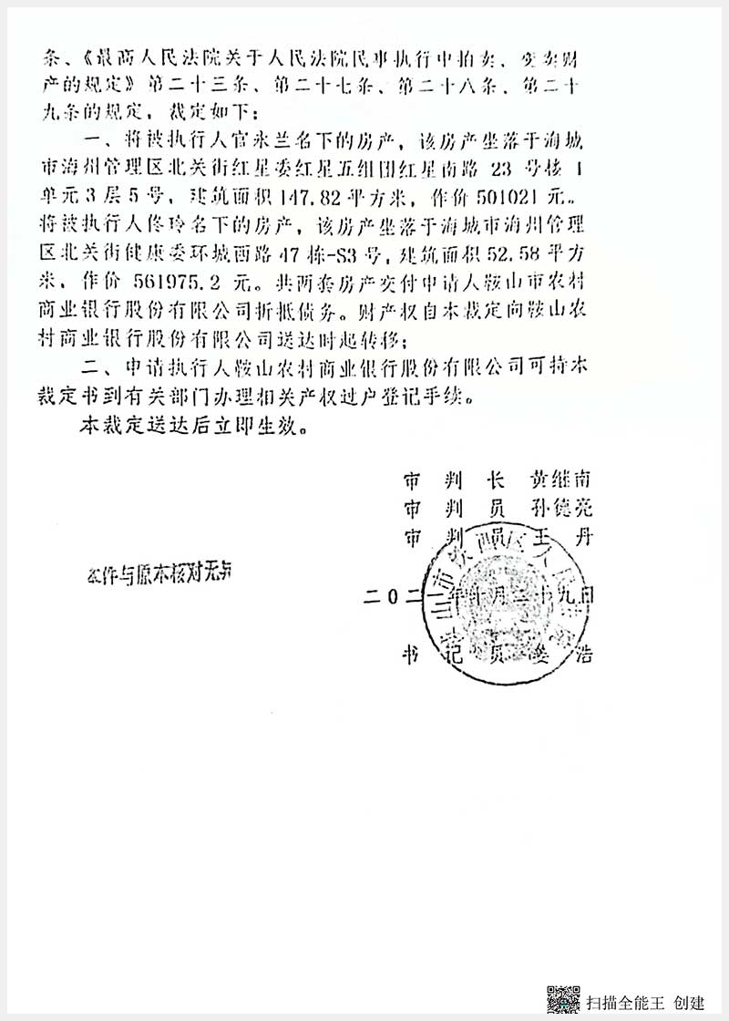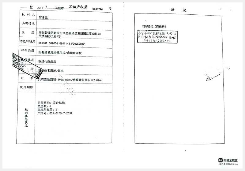 名称:海城市海州管理区北关街红星委红星五组团红星南路23号楼1单元3层5号房产 面积:147.82㎡ 浏览次数:432