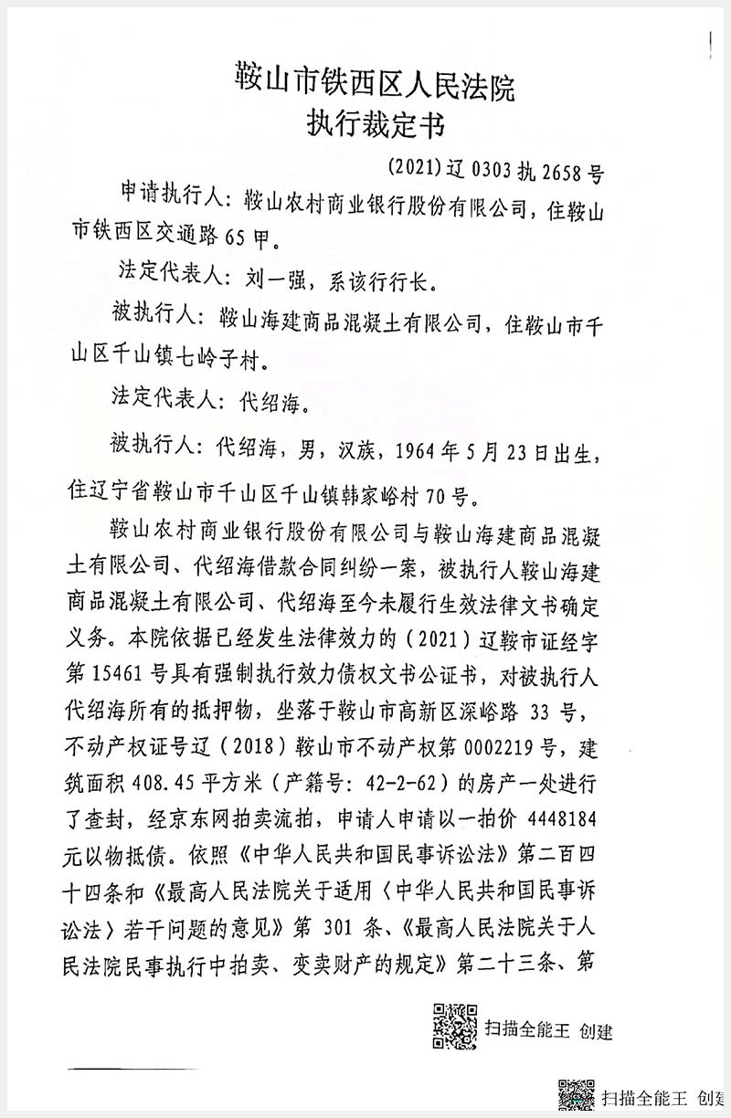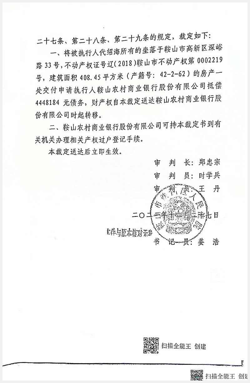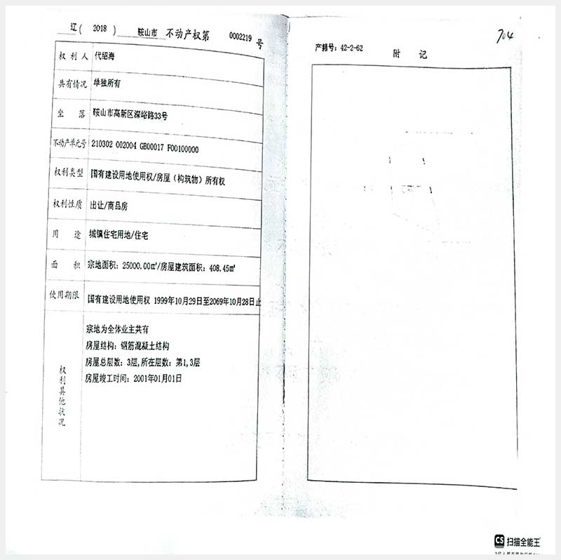 名称:鞍山市高新区深峪路33号房产 面积:408.45㎡ 浏览次数:510