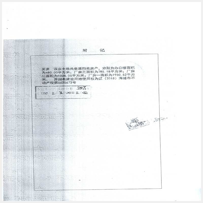 名称:海城市西柳镇坯厂村房产及土地使用权 面积:房产:4233.7㎡;土地:4271㎡ 浏览次数:457