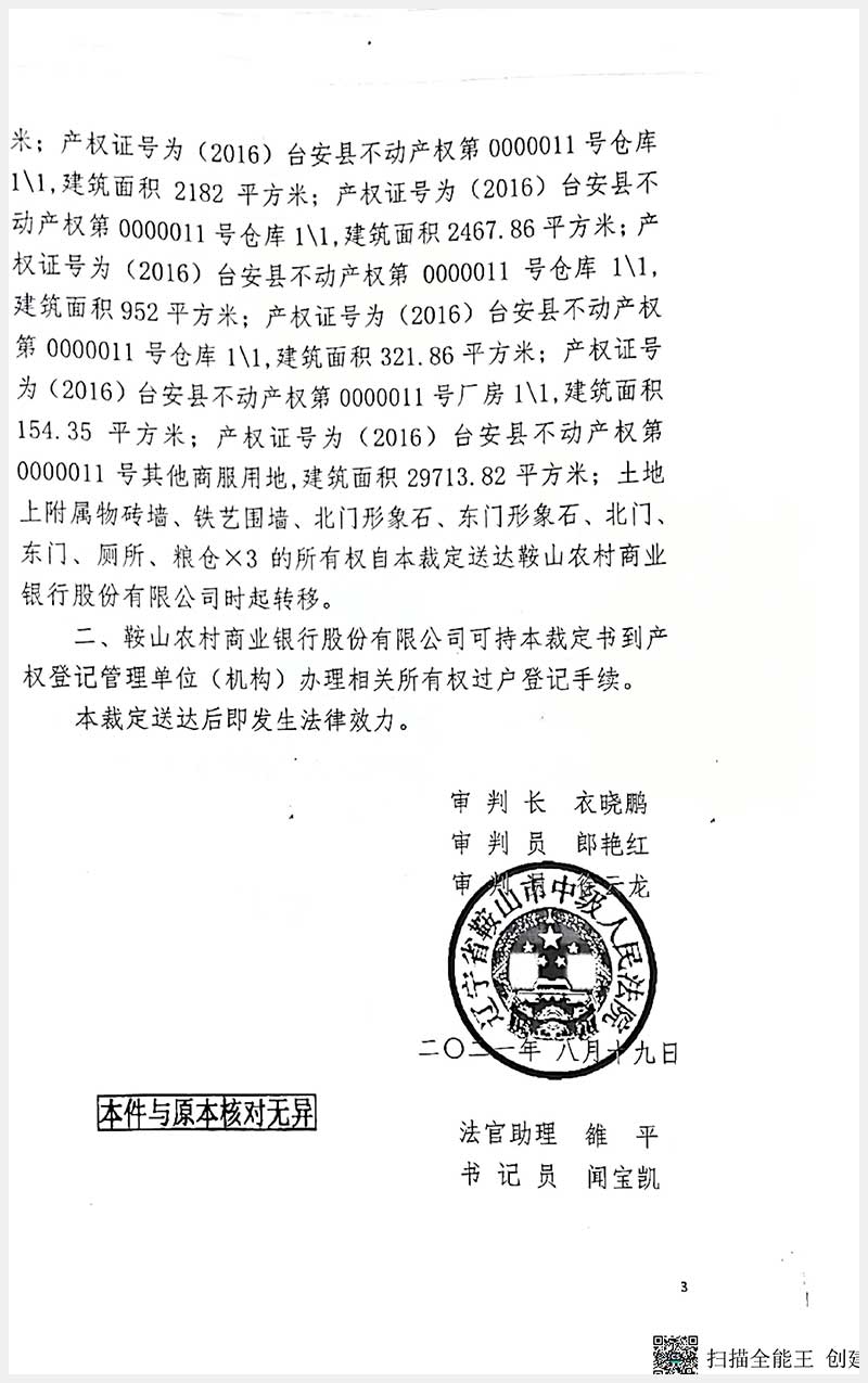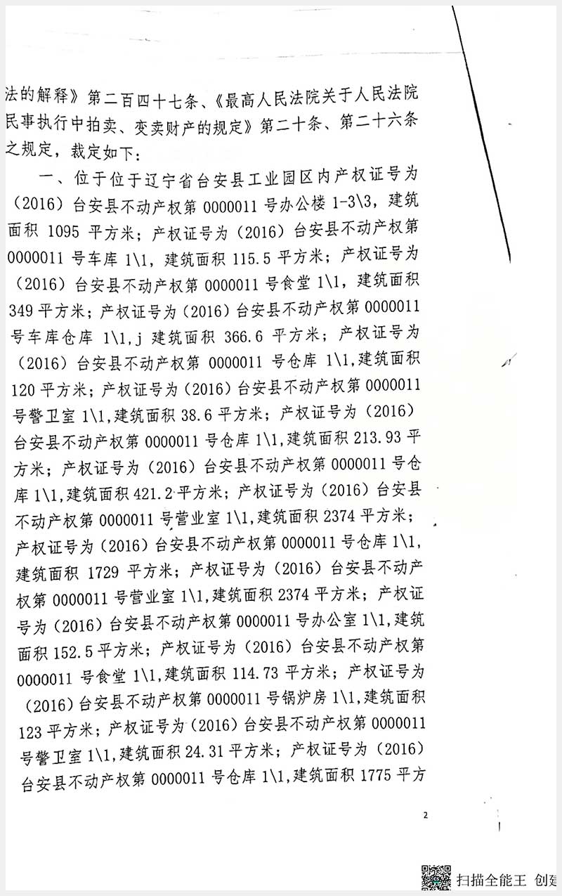 名称:台安县工业园区房产及土地使用权 面积:房产:17553.79㎡;土地:29713.82㎡ 浏览次数:480
