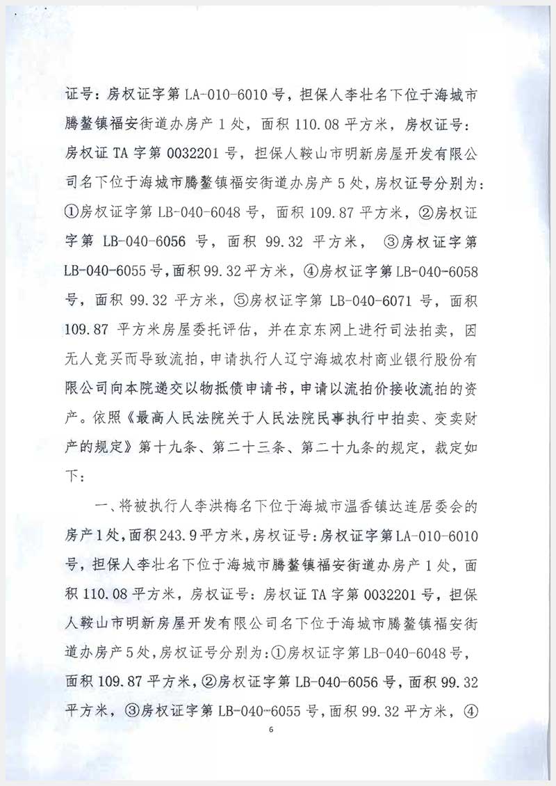 295号 海城市腾鳌镇福安街道颐水嘉德二期6处房产