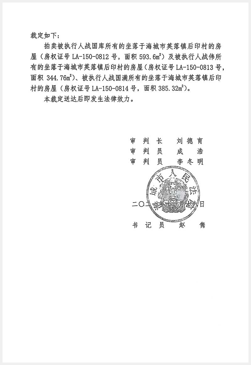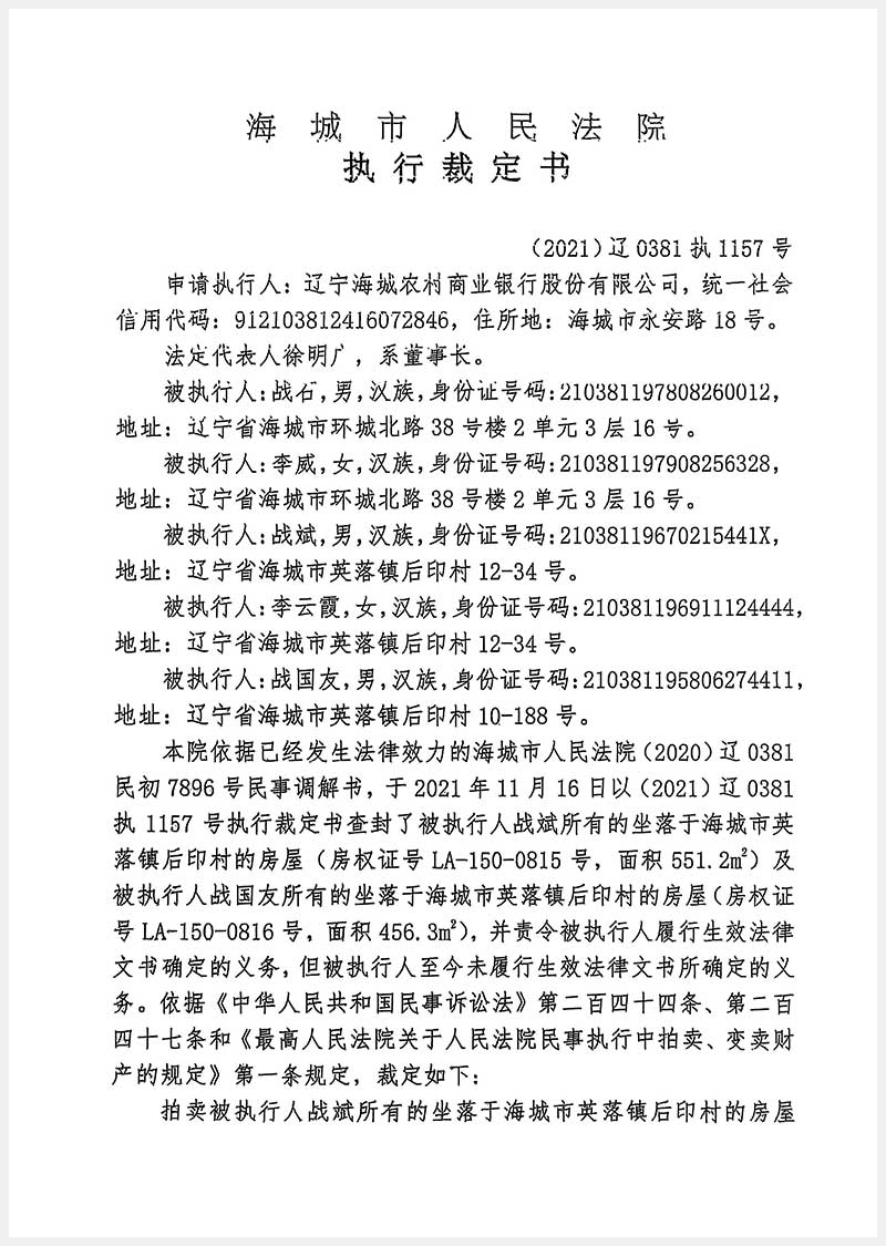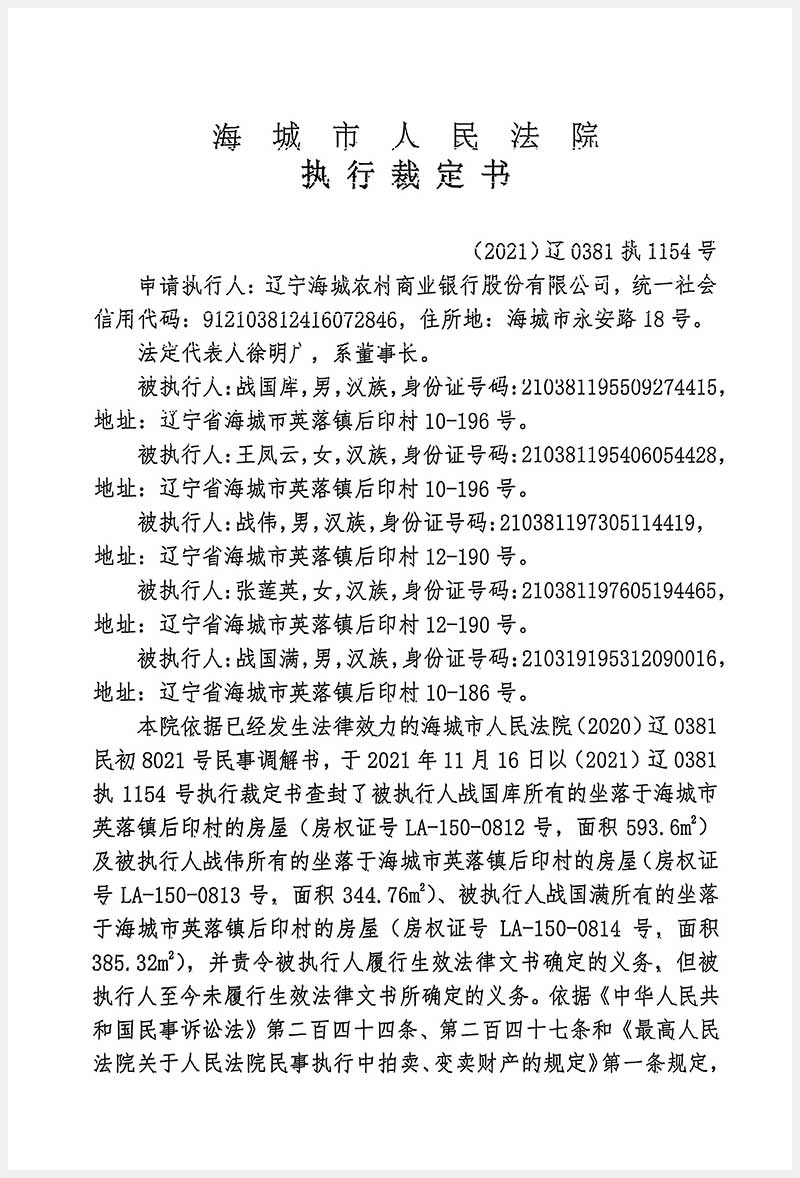 名称:海城市英落镇后窨村5处房产 面积:2331.18㎡ 浏览次数:1162