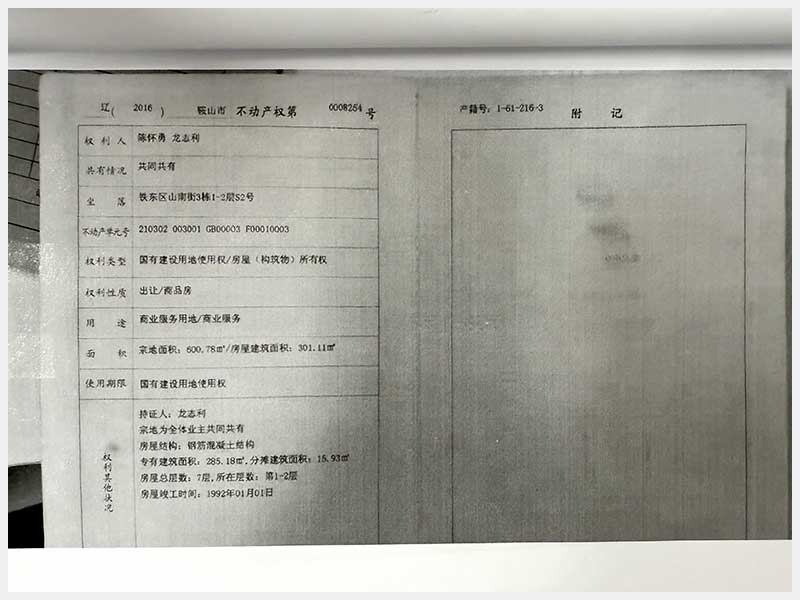 地址:鞍山市铁东区山南街3栋 标的号:212