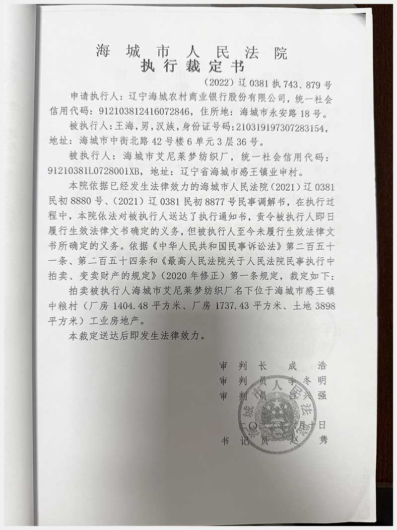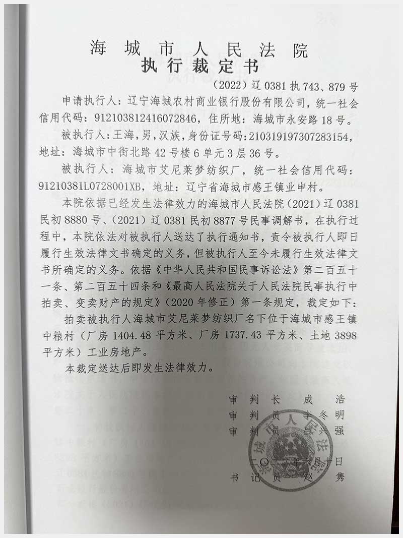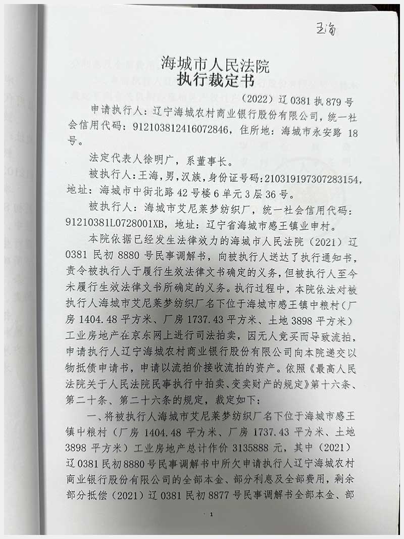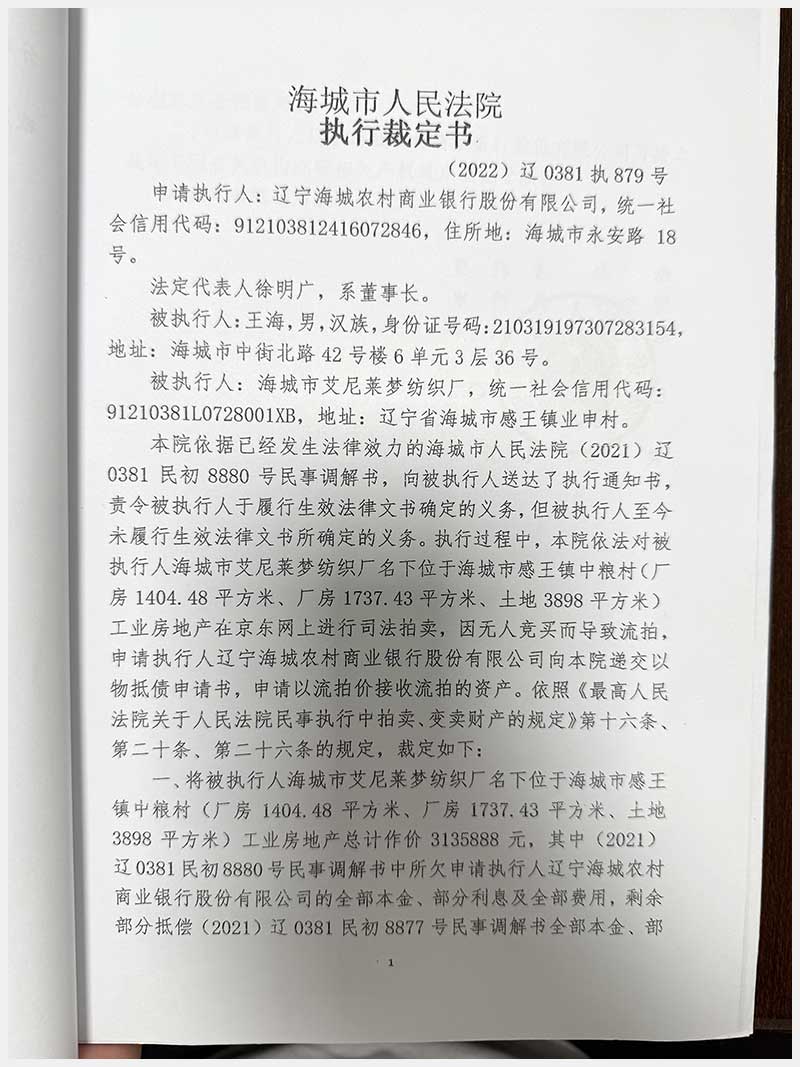名称:海城市感王镇中粮村房产及土地使用权 面积:房产:3141.91㎡;土地:3898㎡ 浏览次数:1007