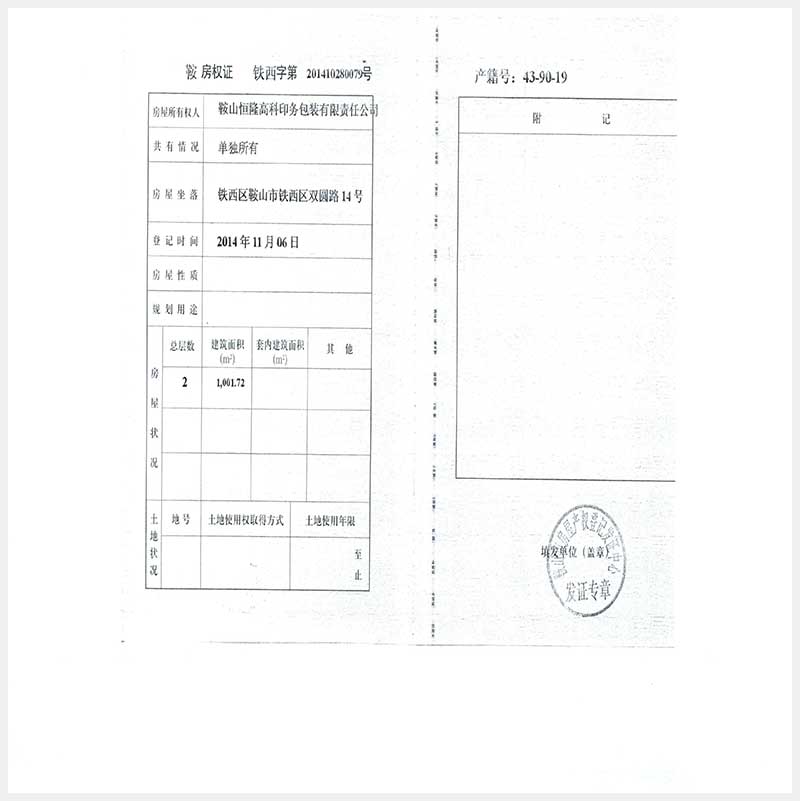 名称:鞍山市铁西区双圆路14号房产及土地使用权 面积:房产:4476.74㎡;土地:5652.3㎡ 浏览次数:201
