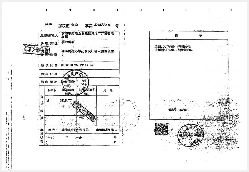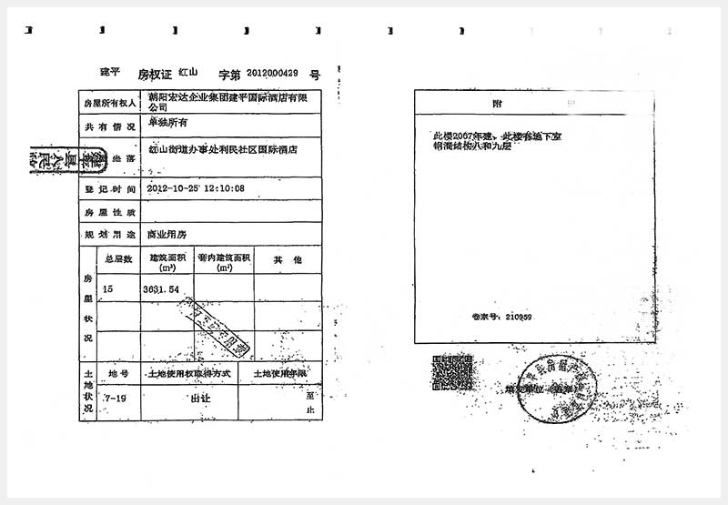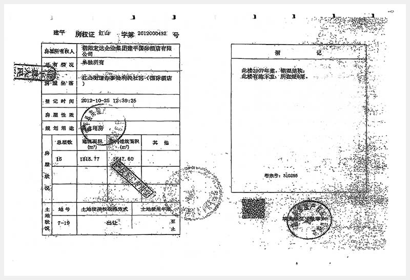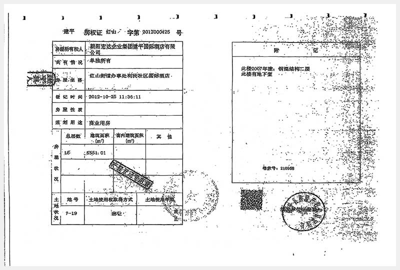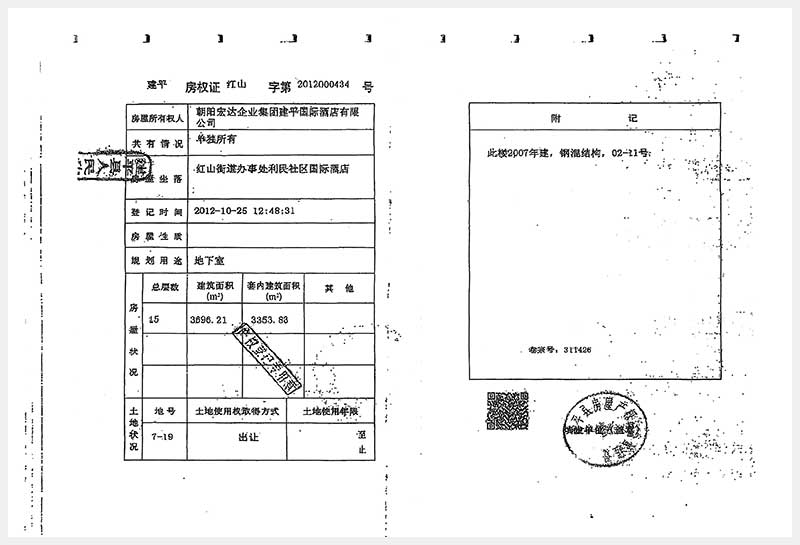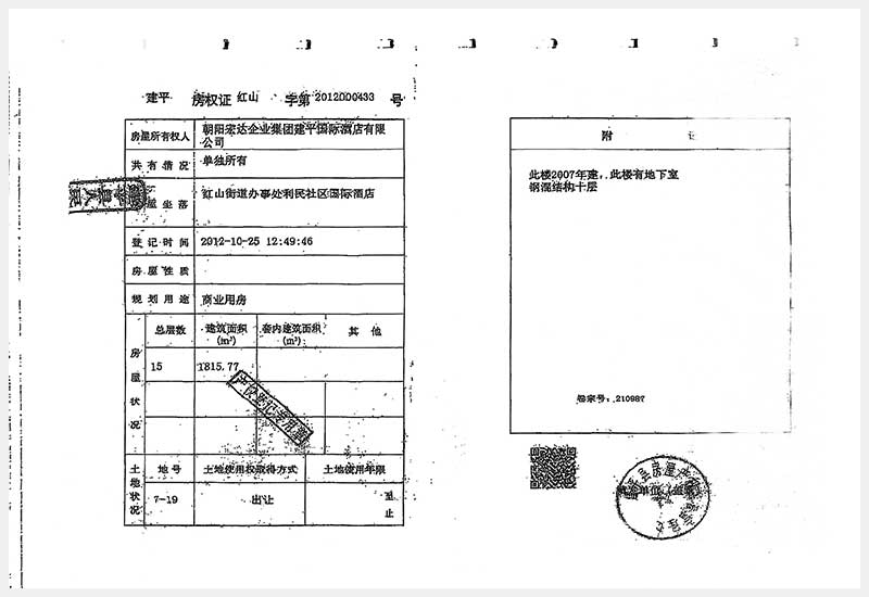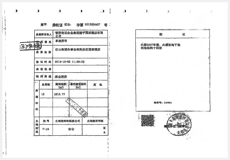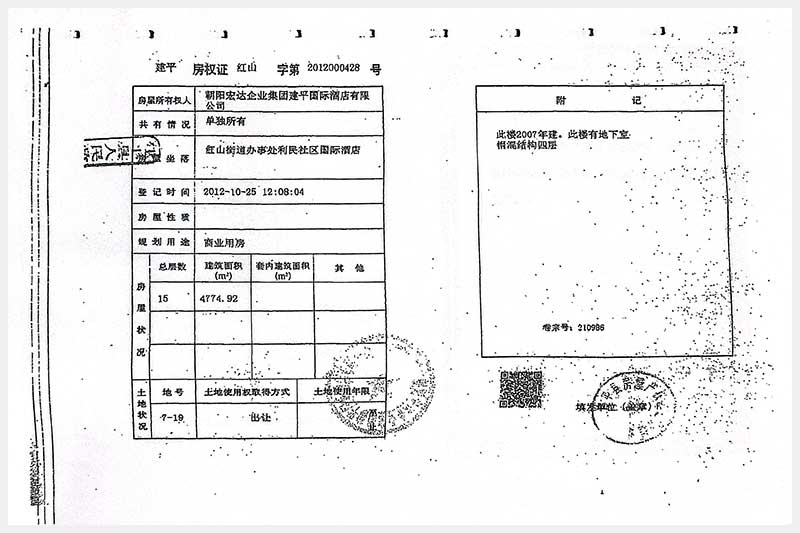 274号 朝阳市建平县红山街道办事处利民社区国际酒店房产及土地使用权