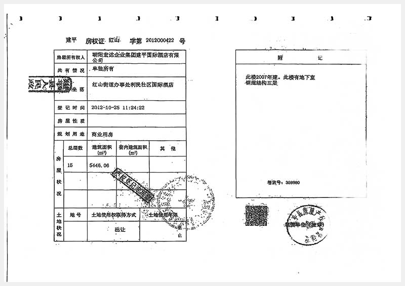 名称:朝阳市建平县红山街道办事处利民社区国际酒店房产及土地使用权 面积:房产:3802㎡;土地:2574㎡ 浏览次数:306