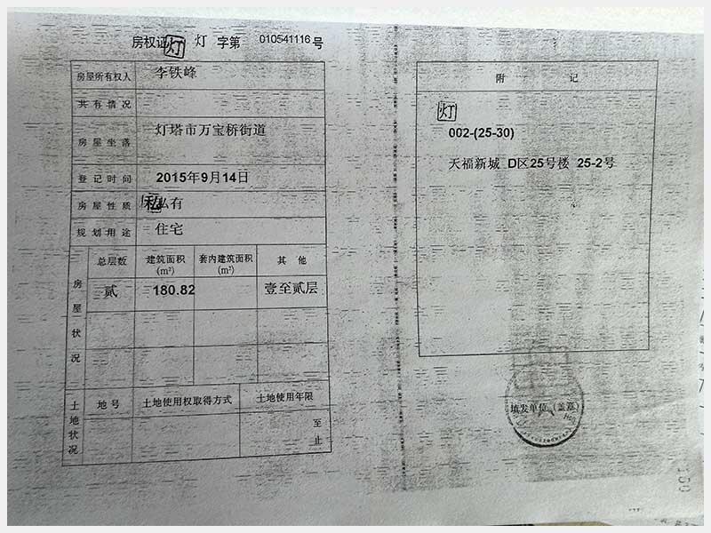 名称:灯塔市万宝桥街道天福新城D区25号楼25-2号房产 面积:180.82㎡ 浏览次数:172